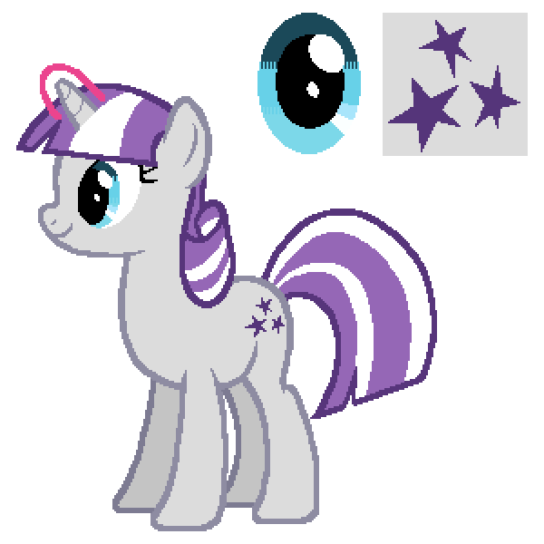 Glasses don't seem to have lenses. The iris gradient has a sharper transition than usual. Appears as both Unicorn and Earth Pony in different episodes. Cutie mark available