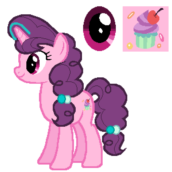 - Cutie Mark:#F36FAB#F5A072#F8CF71#FFFFFF#72BDBA#98DAB2#BBF2BC#B467B1#D497D4#EC5859#AA333A#371F34